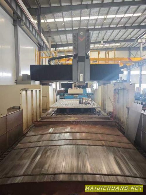 在位出售海天4028数控龙门加工中心发那科MF系统,工作台4/2.5米、行程4.2/3.2米、门高1.4米,两线一硬齿轮头、带刀库、带全自动铣头、安装少用